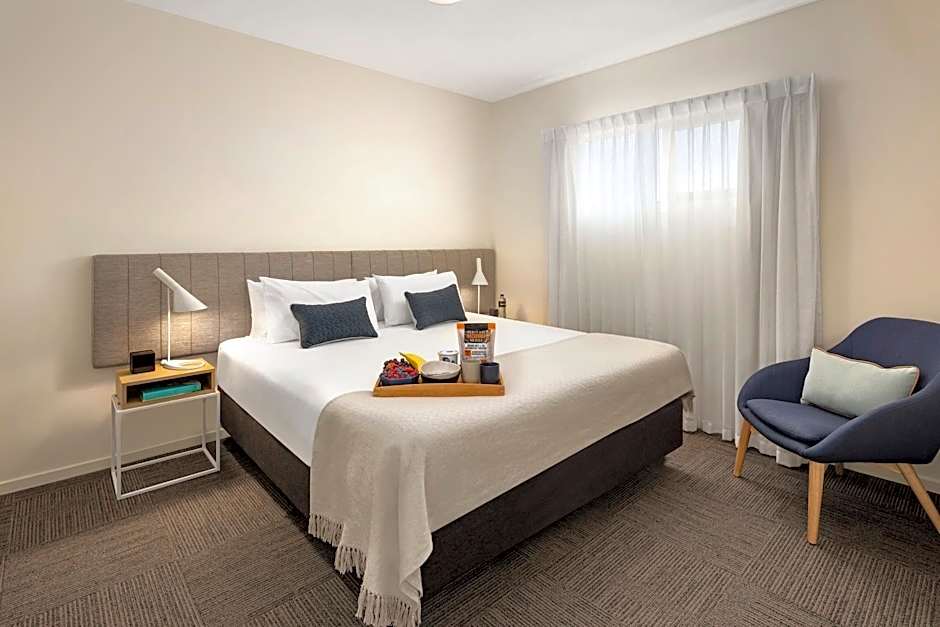 One Bedroom Apartment offer space to move, with a separate bedroom featuring a comfortable large bed and private bathroom with laundry facilities. The relaxed separate living area, fully equipped kitchen, dining space & balcony are perfect for short or long stays. A daily housekeeping service is included (excluding Sundays and public holidays).
